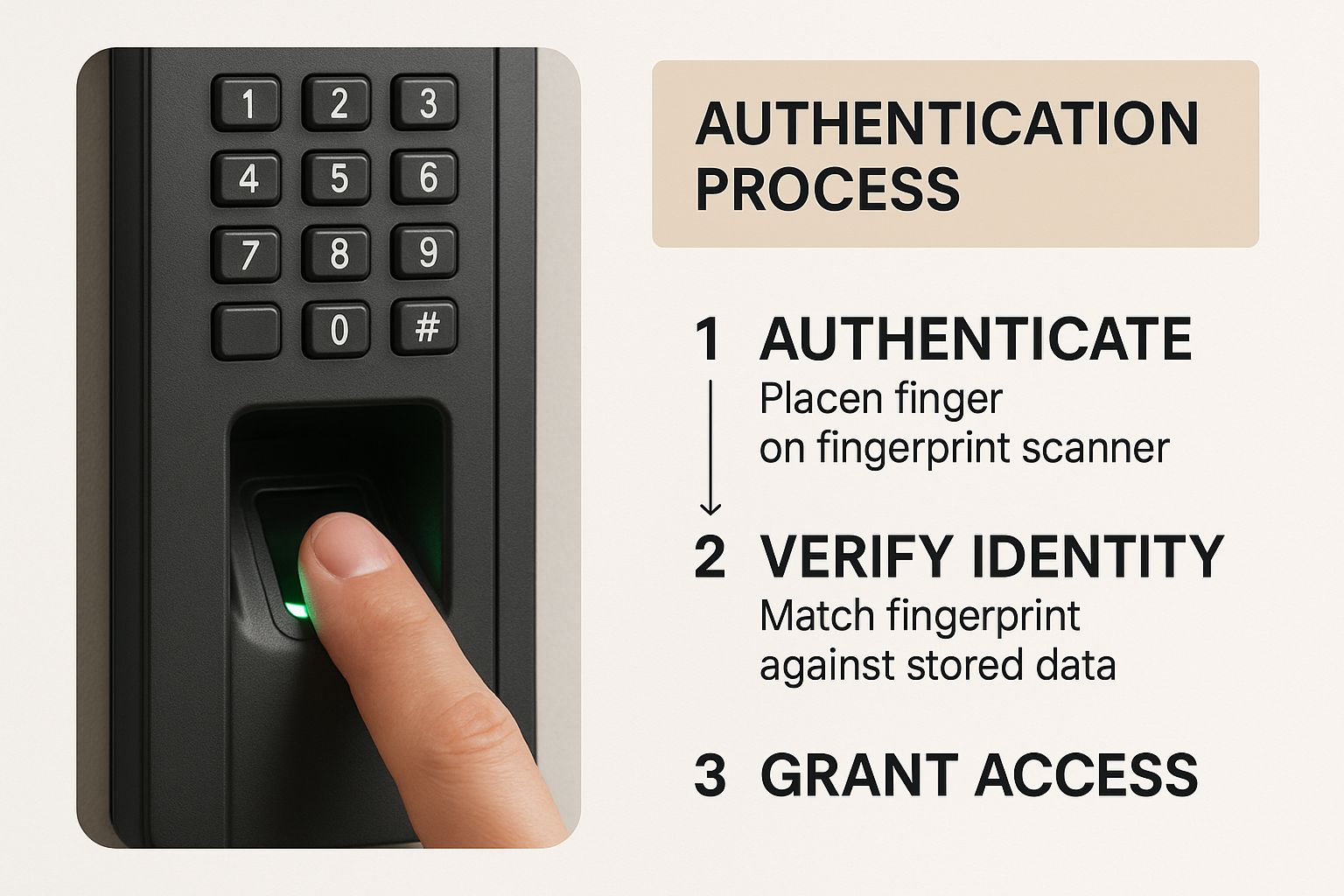 The process is surprisingly simple. First, a user’s biometric data—say, a fingerprint—is captured and saved as a secure digital template. When that person wants to get in, they present their finger to the scanner. The system scans it, compares it to the saved template, and if it's a match, the door unlocks. The whole thing takes just a couple of seconds.