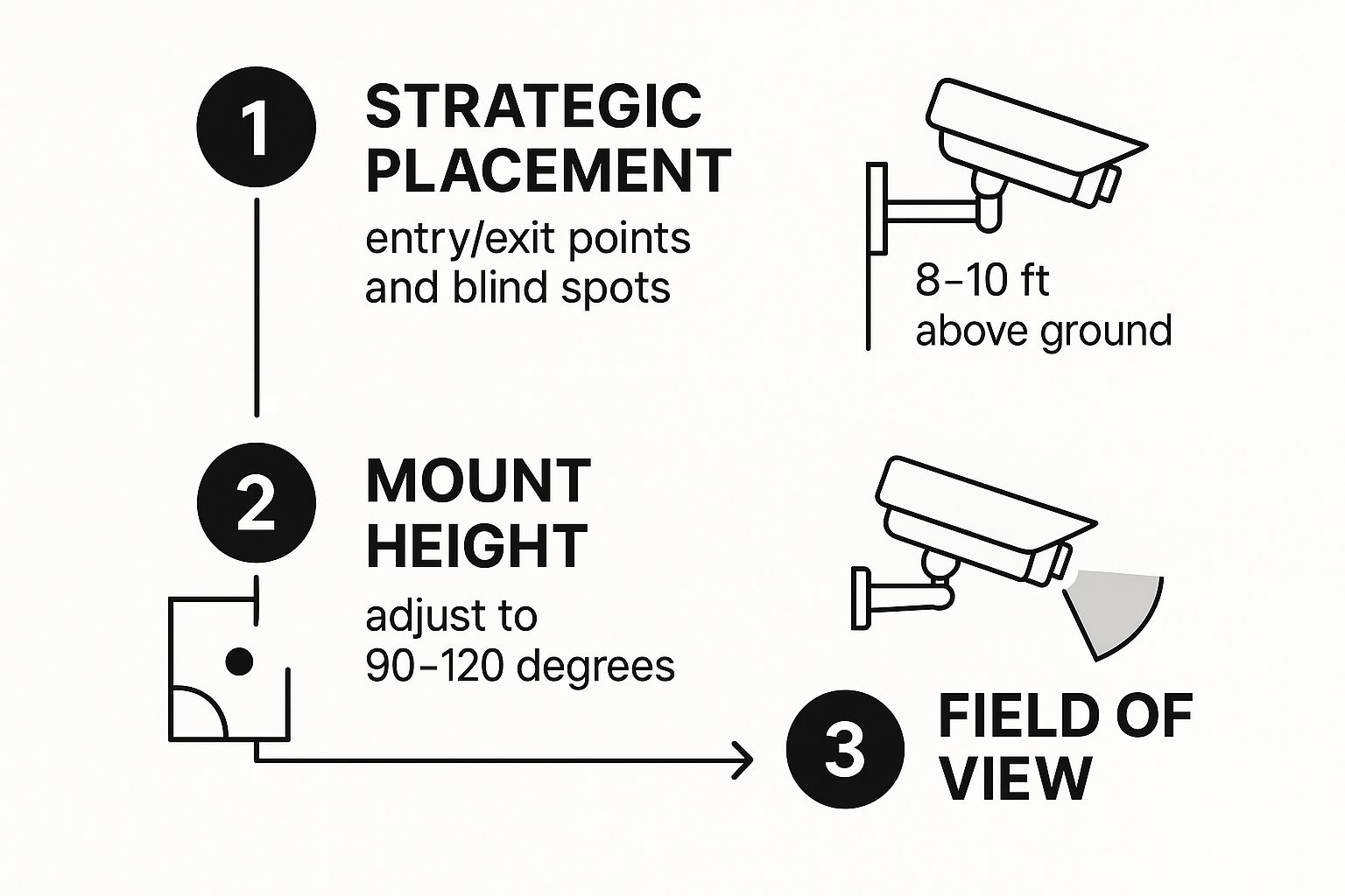 Honestly, where you place your cameras is probably the single most important decision you'll make. The whole point is to cover your high-risk areas, get the widest useful view, and keep the cameras themselves safe from bad weather or a well-aimed rock.