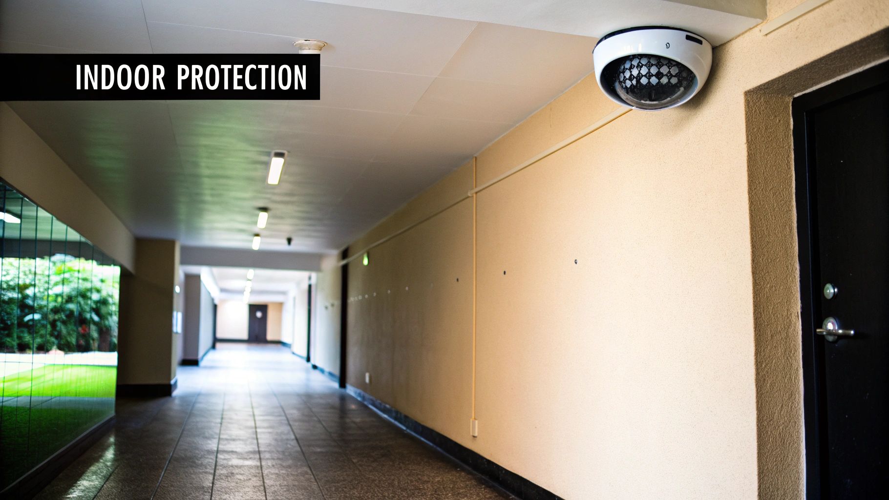 While your outdoor cameras are the first line of defense, interior cameras are your eyewitnesses. Their job is to capture critical evidence if an intruder actually makes it past the perimeter. The trick with indoor placement is finding the sweet spot between comprehensive coverage and personal privacy.