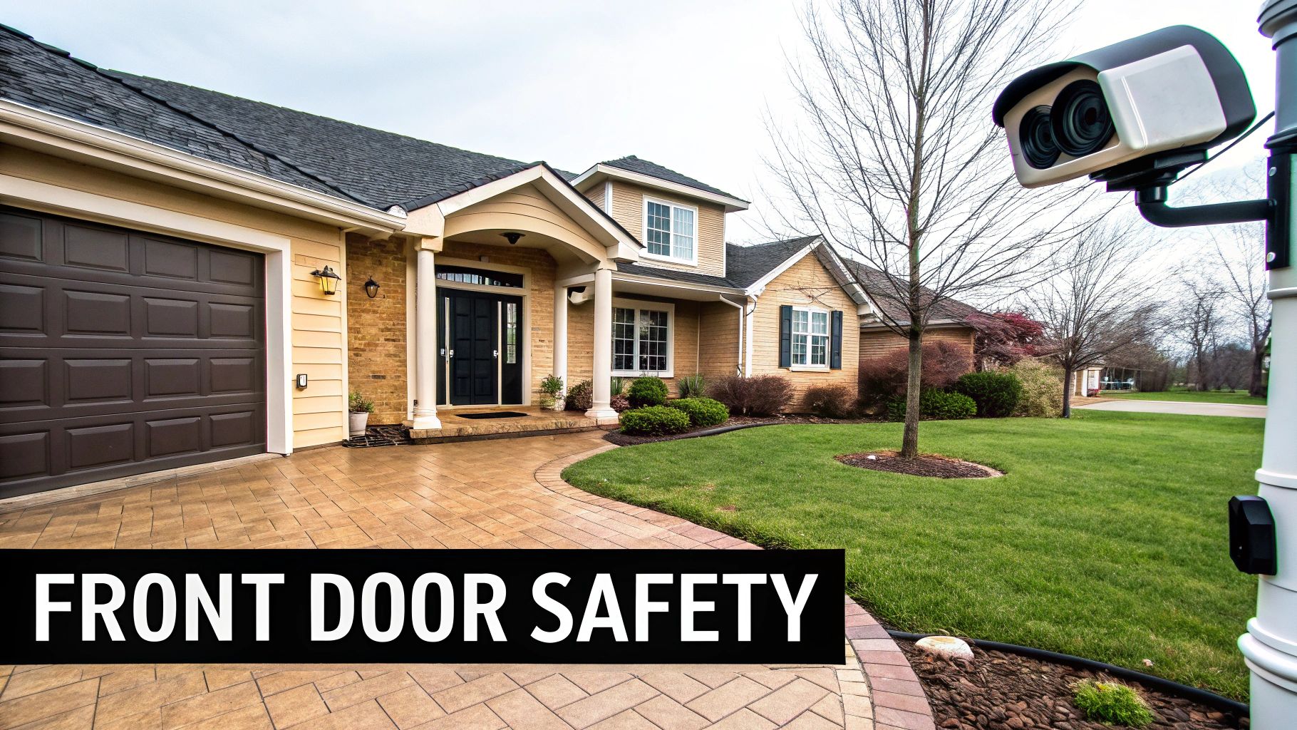 The front door is ground zero. It’s where most people—invited or not—will approach. I always recommend mounting a front door camera at about seven feet high. Why that specific height? It's just high enough to be out of a casual person's reach, but still low enough to get a clear shot of their face, not just the top of their hat.